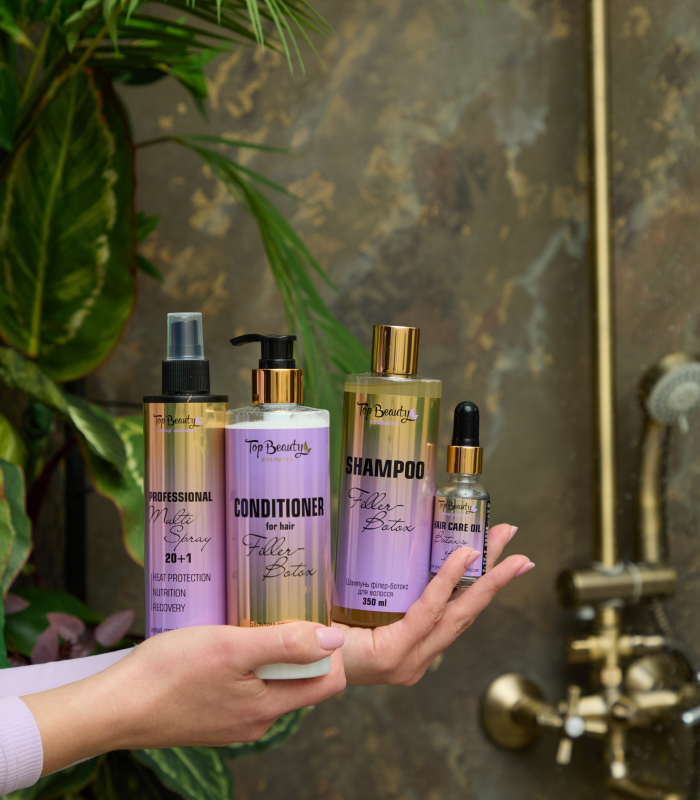 Набор филлер-ботокс для волос Top Beauty – включает в себя комплекс продуктов, специально разработанных для интенсивного ухода за волосами, обеспечивая эффект ламинации и восстановления структуры волос. В набор входят шампунь, кондиционер, многофункциональный спрей и сухое парфюмерное масло, которые работают вместе для достижения максимального результата.